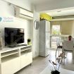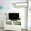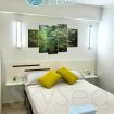 The flat has views of the city. It has a double bed, a trundle bed with two single mattresses, a living room, 1 bathroom, a large wardrobe and a fully equipped kitchen with fridge, microwave, coffee maker and toaster.