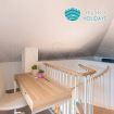 It has one open bedroom with a double bed, two double sofa beds and a single sofa bed.