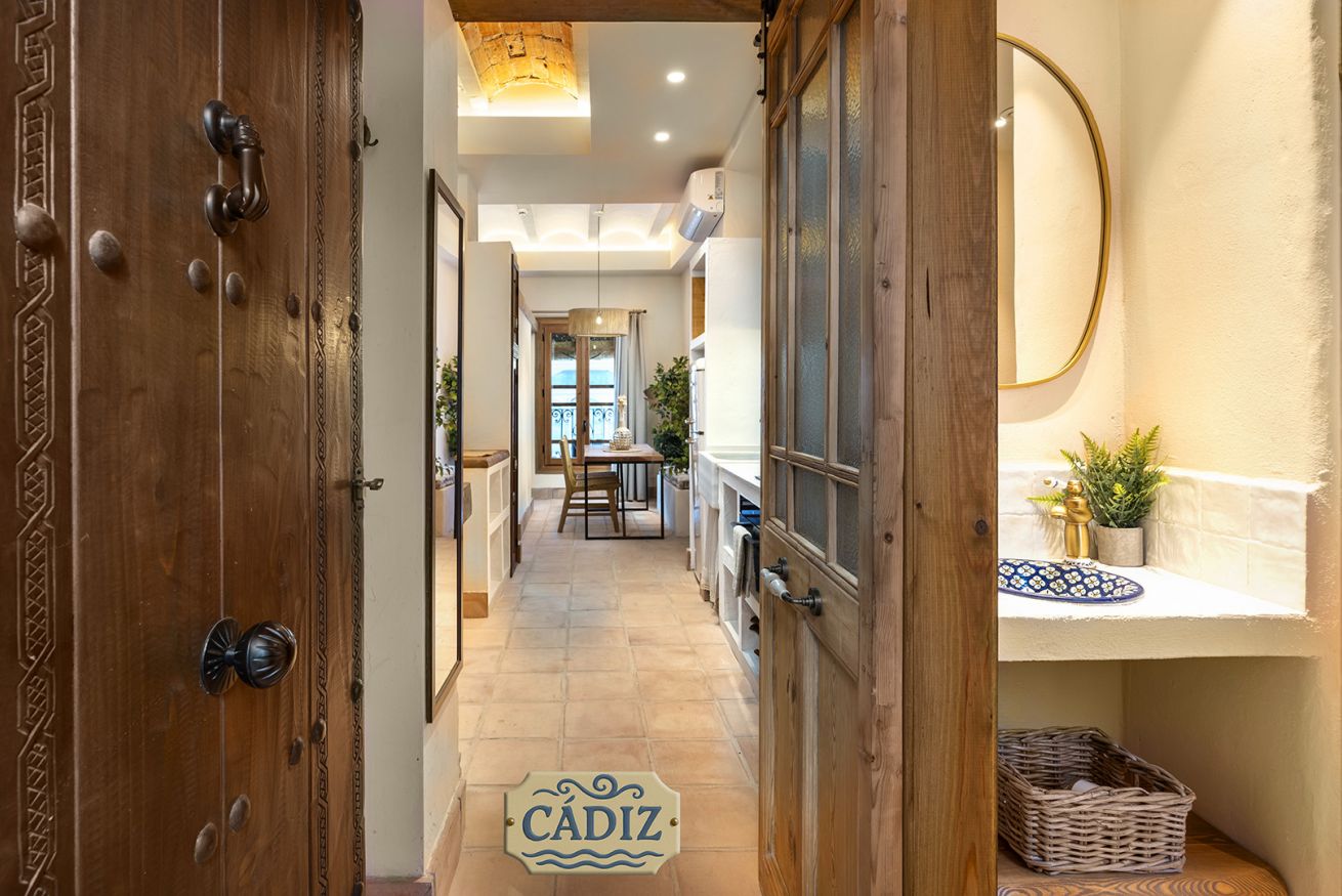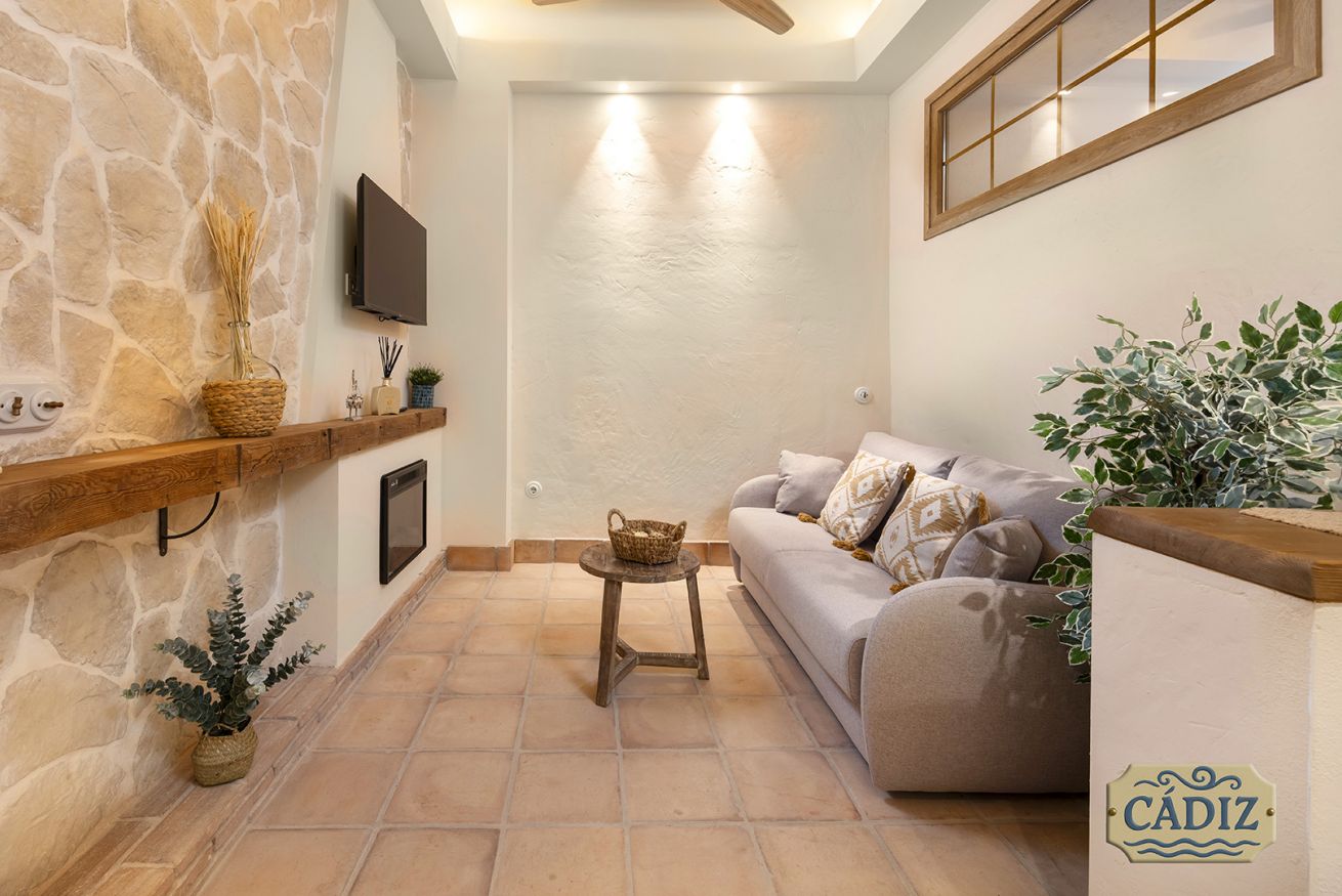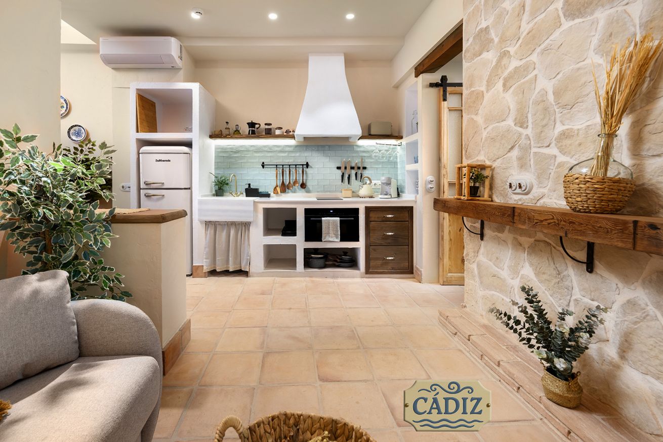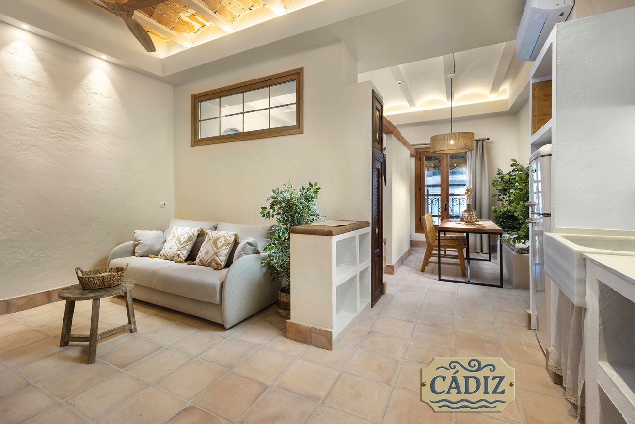 This exterior apartment, ideal for 4 guests, is inspired by the light, coastline, and southern breeze of Cádiz. Its design pays tribute to the city’s white architecture, open patios, and subtle maritime touches reminiscent of the Bay of Cádiz. Bright, fresh, and relaxing, the space includes a cozy bedroom, private bathroom, fully equipped kitchen, and a dining area for your comfort.