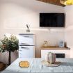 This interior apartment, ideal for 2 guests, is inspired by the city of orange blossoms and the Guadalquivir River. Its design reflects the warmth of orange tones, the scent of flowering patios, and the elegance of Mudejar architecture. A charming entry porch welcomes you, adding a traditional touch to the space, which also includes a cozy bedroom, private bathroom and a rest area with table, chairs and TV.